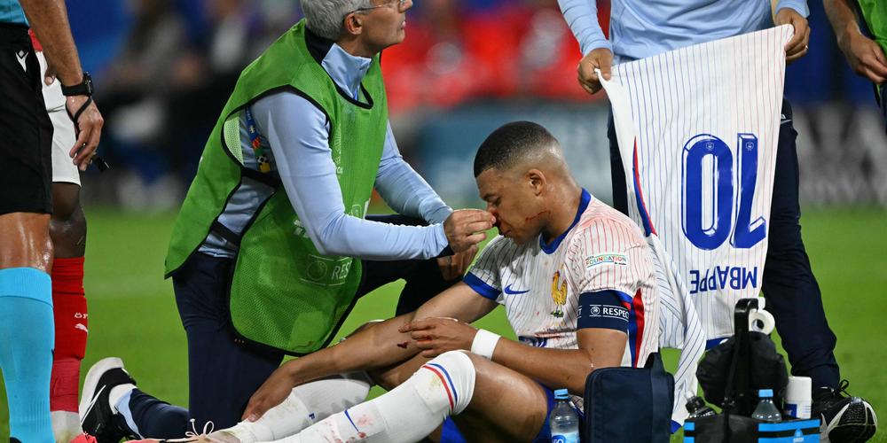 Mbappé était initialement équipé d’un masque sur mesure aux couleurs du drapeau français. Mais les règles de l’UEFA stipulent que l’équipement de protection doit être d’une seule couleur, et il a opté pour une version entièrement noire contre la Pologne.