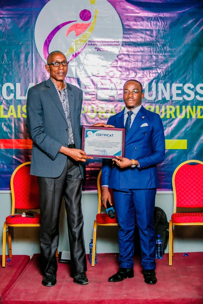 Lors de la séance découverte : des jeunes congolais du Burundi ont présenté aux participants quelques projets et initiatives qu’ils mènent. En guise de remerciement, le JCDB a décerné un Certificat à tous ceux qui ont contribué de manière significative à la réussite de ce 1er conclave, symbole de reconnaissance et d’encouragement à porter régulièrement une attention particulière aux futures initiatives des jeunes.