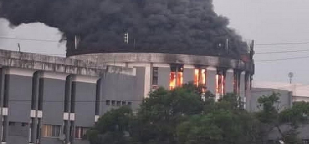Photo du parlement libérien incendié dans des conditions non élucidées pour le moment.